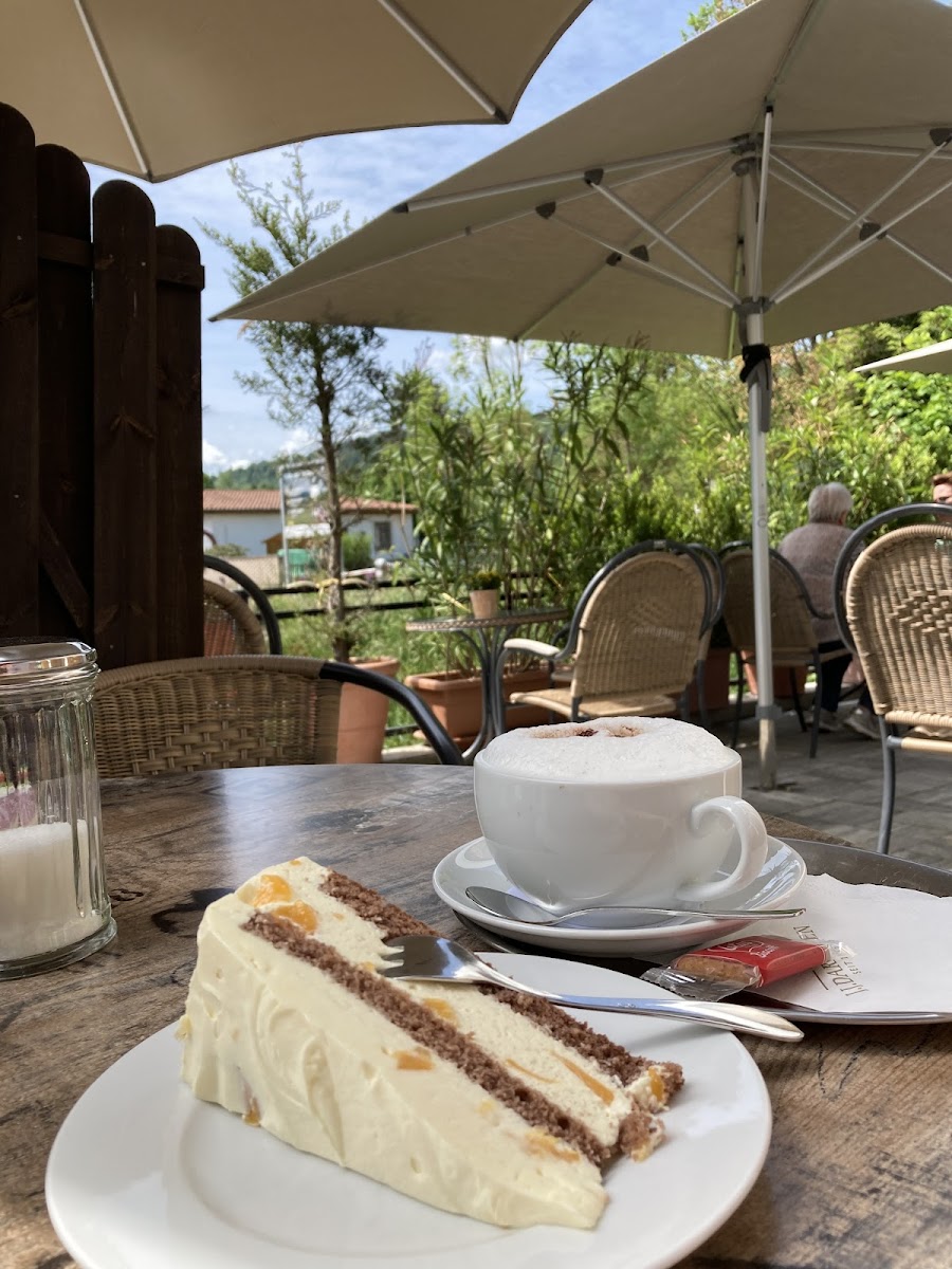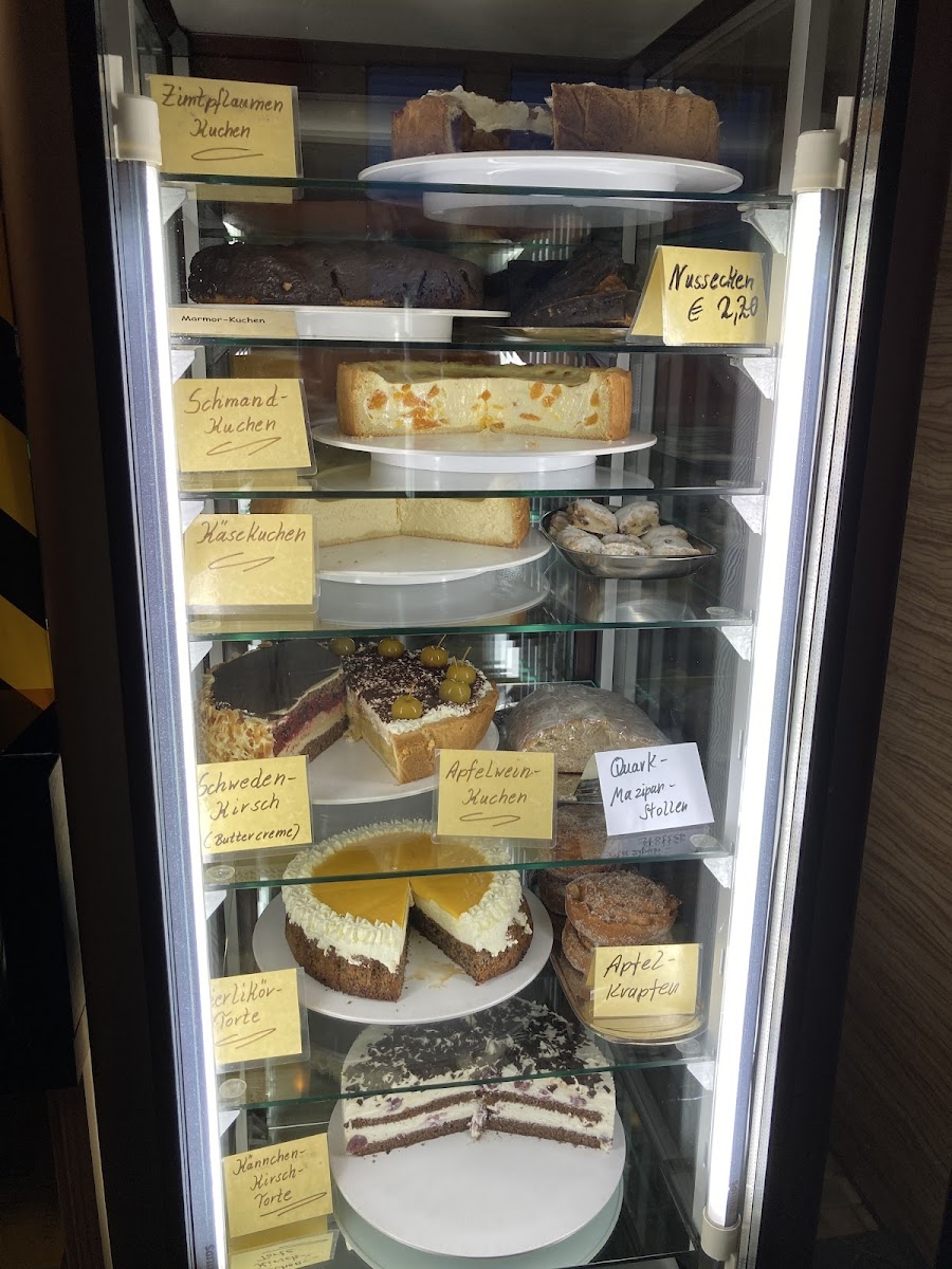The atmosphere here leans toward intimate and homely rather than bustling, making it a place where locals might stop by for a mid-morning break or a gentle afternoon pause. The café is known locally for its well-prepared traditional cakes like Eierlikörkuchen or Mohnkuchen mit Birne, which often draw curious visitors as much as the coffee itself. Freshly made latte options and a particularly popular iced coffee round out the beverage offerings.